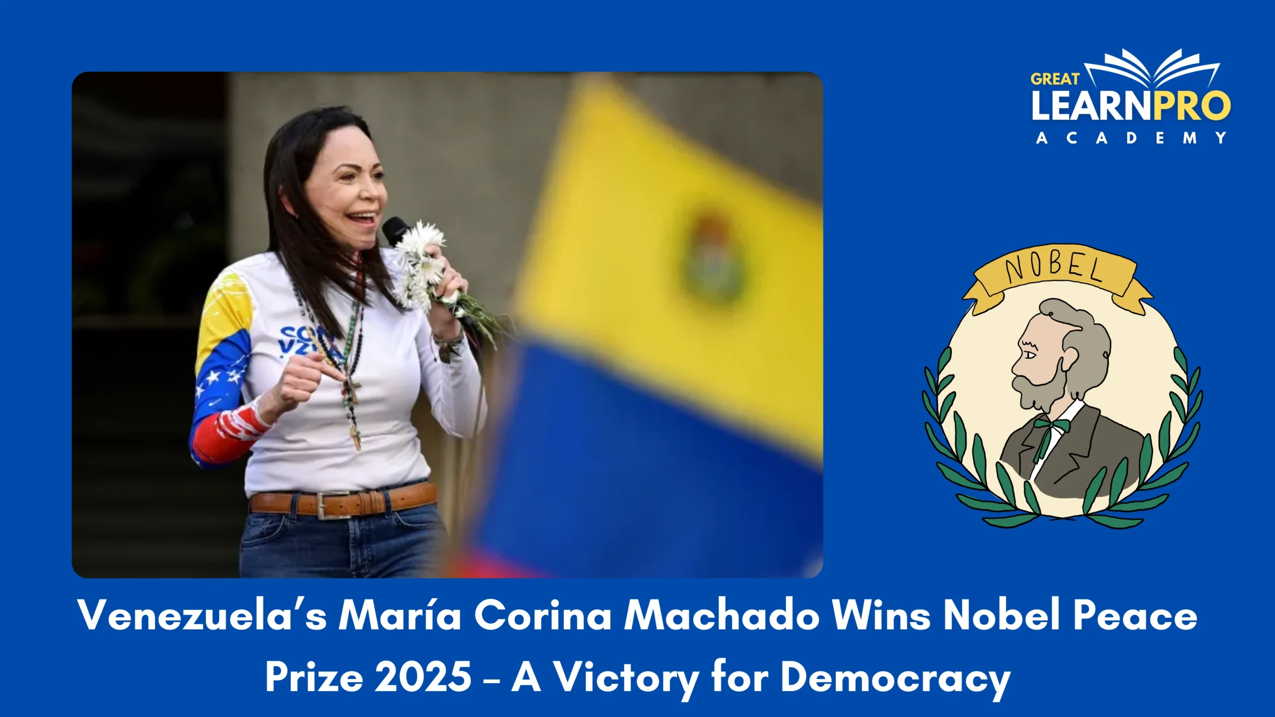 On 10 October 2025, the Norwegian Nobel Committee awarded the Nobel Peace Prize to María Corina Machado, a Venezuelan opposition leader, “for her tireless work promoting democratic rights for the people of Venezuela and for her struggle to achieve a just and peaceful transition from dictatorship to democracy.” The announcement was made in Oslo, Norway, with wide international attention.